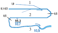 Те саме на насипах і у виїмках (3 - висота, 2 - глибина в м) |