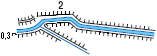 Річки, канали та канави з дамбами або валиками з однієї та з обох сторін (2 - висота дамби в м) |