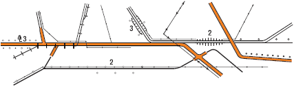 Шляхопроводи: 1. Над залізницею. 2. Під залізницею. 3. На одному рівні